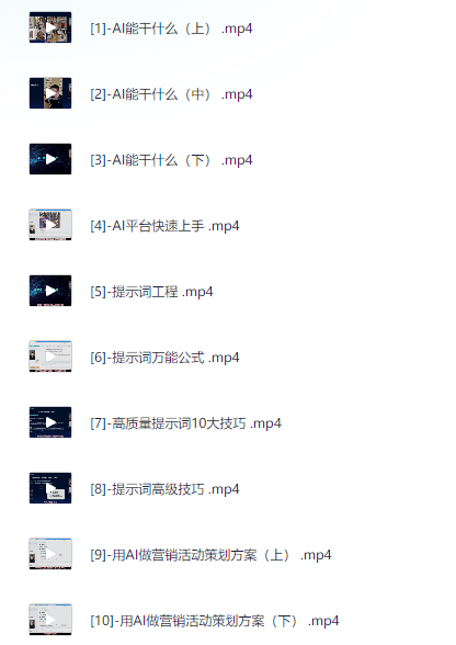 AI办公综合应用课,工作效率大幅提升,夸克网盘课程,本课程系统构建AI办公全场景解决方案,覆盖营销策划到智能设计的全工作流。核心模块深度解析提示词工程,从基础公式到10大高阶技巧层层递进,独创的AI调教方法可将大模型转化为专属提示词生成器。营销实战单元拆解活动策划全流程,实现从方案框架到微博文案、爆款文章的AI辅助创作,配合思维导图自动生成功能提升策划效率3倍以上。