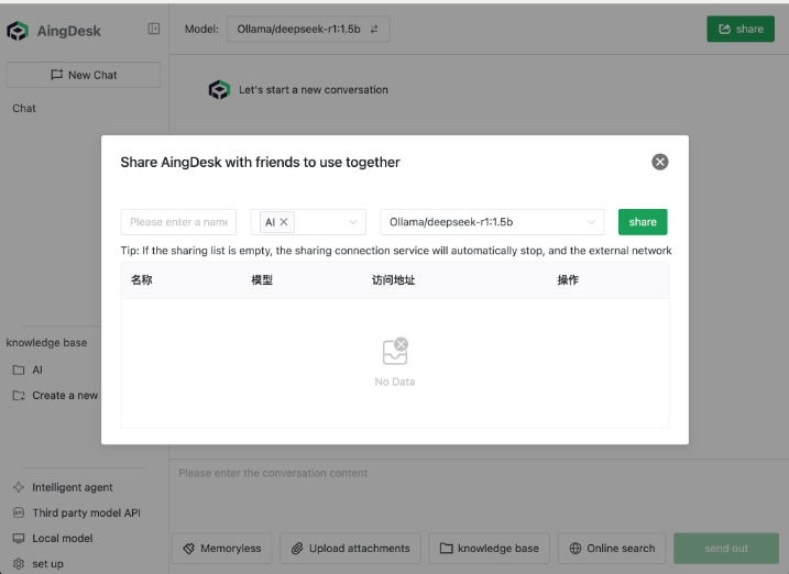 AingDesk是一款操作简便的AI助手软件,拥有超强知识库能力的开源免费AI助手,专为AI新手设计。支持一键部署本地AI模型及主流模型API,可搭建和管理本地知识库,同时支持智能体创建和在线共享。工具不仅支持联网搜索,还具备服务端部署功能,未来将支持单次多模型同时对话。客户端版本适用于MacOS和Windows,用户可通过官网、CNB及Github轻松下载安装。