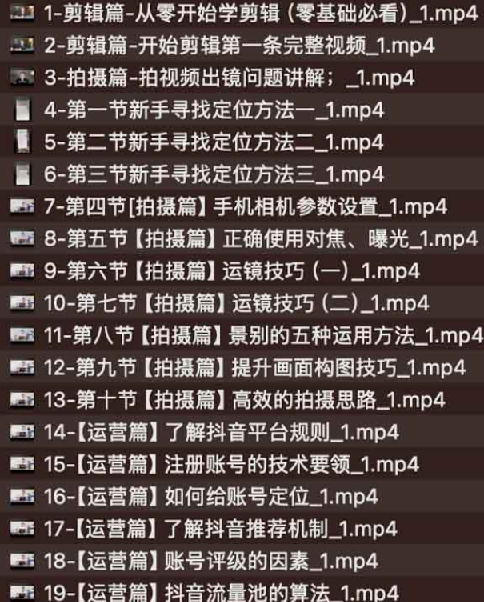 阿火精选手机拍摄剪辑运营实操,夸克网盘课程。本课程体系由阿火精心打造,涵盖了短视频创作的各个环节,适合零基础学员逐步掌握从拍摄到变现的全流程技能。课程还提供了影视剪辑、手机摄影、直播流程、涨粉技巧等实用内容,全面提升学员的短视频创作与运营能力。通过系统学习,学员将掌握短视频拍摄、剪辑、运营、变现的核心技能,打造高质量内容,实现从新手到达人的转变。