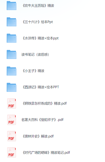 100部名著精读笔记,夸克网盘课程资源。这份精心整理的“100部名著精读笔记”涵盖中外文学经典,从《三国演义》《红楼梦》《西游记》《水浒传》等四大名著,到《小王子》《傲慢与偏见》《一千零一夜》《哈利·波特与魔法石》等西方经典,再到《朝花夕拾》《儒林外史》《乡土中国》《草房子》等现代与当代文学代表,全方位呈现丰富的阅读资源。