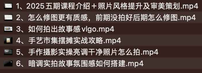 2025 菜菜手作专业摄影训练营,夸克网盘课程。2025菜菜手作专业摄影训练营包含六个核心课程,帮助学员从拍摄到后期全面提升。课程介绍与照片风格提升模块以案例分析方式传授审美策划思路,修图模块分享如何为拍摄质感不足的照片注入高级感;Vlog拍摄模块讲解如何构建故事感并呈现手作过程;手艺市集摆摊实战攻略提供选品、布展与互动技巧;手作摄影实操模块示范在光线、构图和亮调处理下拍出干净清新的作品;暗调实拍模块重点演示如何营造氛围感与强化情感表达。整个训练营围绕实操与美学相结合,让学员在短时间内掌握手作摄影的专业思路与技巧。