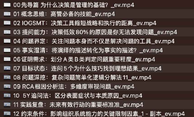 关苏哲《如何快速做决策之技能提升六步法》,夸克网盘课程。这套《如何快速做决策之技能提升六步法》课程由关苏哲讲授,专为高阶管理者设计,系统讲解了从思维方式到落地执行的全流程决策技巧。内容涵盖了12个模块,围绕“决策是管理核心”的理念,帮助管理者构建清晰、可执行的判断框架。
