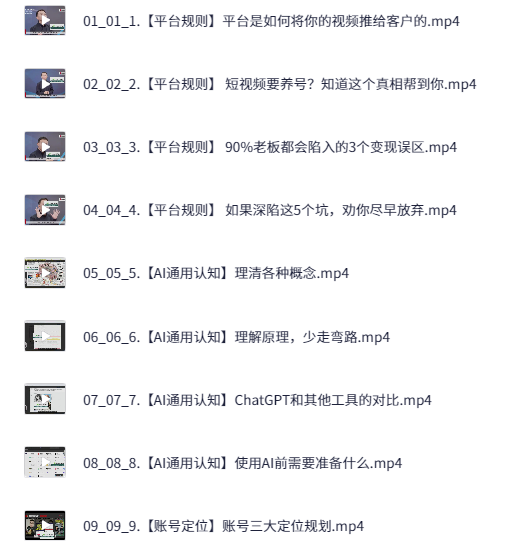 AI+短视频获客快训营+剪辑课,夸克网盘课程。这门AI+短视频获客快训营以100节实战课程为支撑,深入剖析平台推送机制,揭示养号与变现常见误区。全流程覆盖从账号定位、专业企业号搭建到标签设置、海量触达以及高效转化,每一步都融入AI工具应用,包括智能对标、脚本模板复制、灵感挖掘与批量剪辑实操。课程还提供高流量脚本模型、爆款选题策略和灯光收音技巧,帮助零基础操作者在短时间内掌握创作与剪辑要点,实现持续流量增长与变现升级。