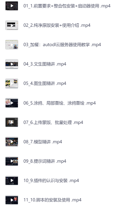 Stable diffusion零基础课程,本课程是为零基础学员设计的Stable Diffusion系统化学习路径,涵盖安装配置、基础操作、进阶技巧和实战案例。学员可以从最初的环境搭建开始,逐步掌握文生图、图生图、ControlNet、Lora训练等核心技能,并应用于AI摄影、视频修复、动画生成和数字人制作。