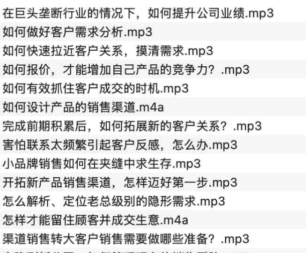 这是一组围绕真实销售场景设计的音频内容,包含“快问快答”与编号主题课两类形式。内容聚焦客户关系推进、需求分析、报价谈判、渠道拓展、成交推进、大客户控单、团队管理等关键环节,适合通勤、碎片时间反复听,用更低成本把“经验”转成“可复用的方法”。