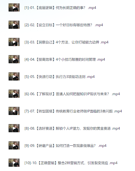本课程系统讲解如何从零开始快速孵化个人品牌,实现知识IP的商业转化。课程围绕底层逻辑与长期正确行为展开,探讨好目标设定、能力边界突破和时间管理的技巧,强调执行力与快速行动的重要性。讲解知识IP现状与未来走势,解析传统教育转型困境和黄金赛道选择,指导打造现象级产品与营销策略,助力将流量转化为持久客户。内容还涵盖从私域变现到借势营销、商业模式构建、合伙人选择以及创业团队打造。课程从避坑指南到团队危机应对,提供价值观建设和落地赋能的实战经验,辅以关于ChatGPT与知识付费等前沿话题,全面呈现创业全流程与品牌持续增长的核心策略。