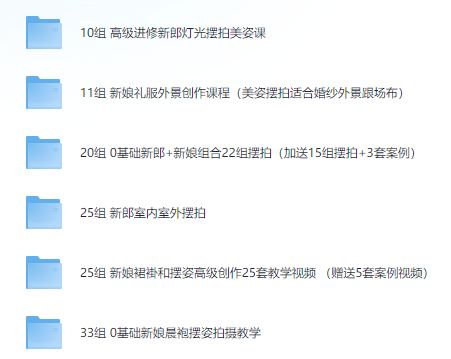婚礼前期摆姿课拍摄教程(共124组)。
