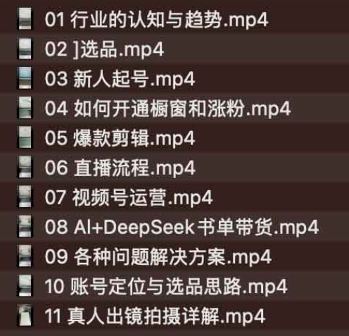 课程实战性强,包含行业趋势分析、选品策略、新人起号方法、橱窗开通与涨粉技巧、爆款视频剪辑、直播标准化流程、账号运营心法。特别融入AI书单带货等创新玩法,针对账号定位、真人出镜拍摄等细节提供深度解析,并给出常见问题解决方案。