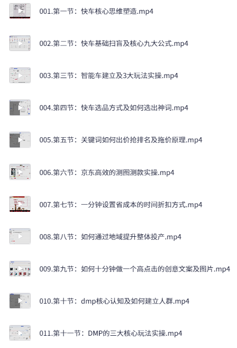 京东快车推广运营宝典。该宝典课程涵盖了京东快车推广运营的全流程,从底层逻辑展开,结合系统化思维和实战操作 ,全方位覆盖推广运营流程。